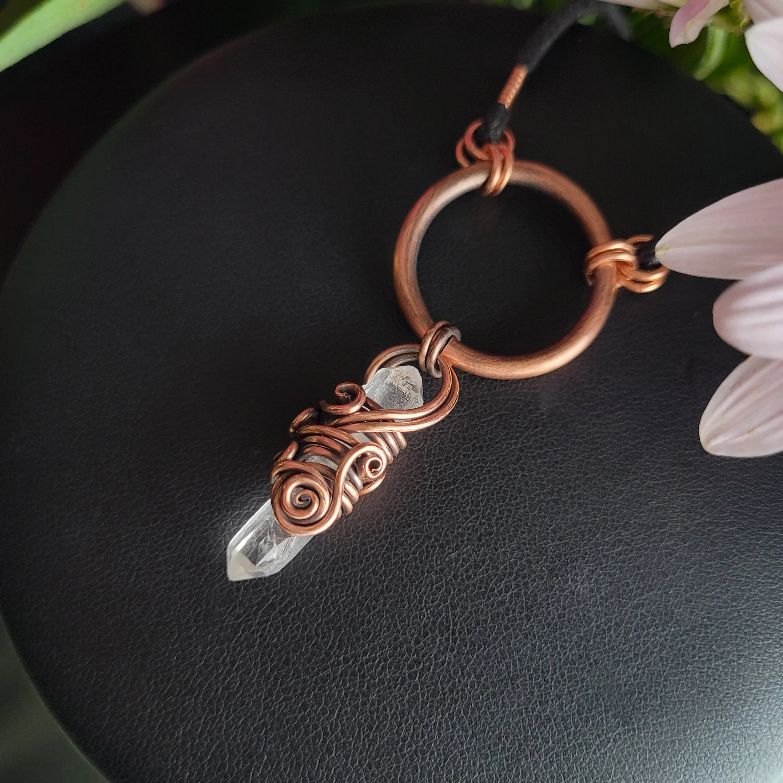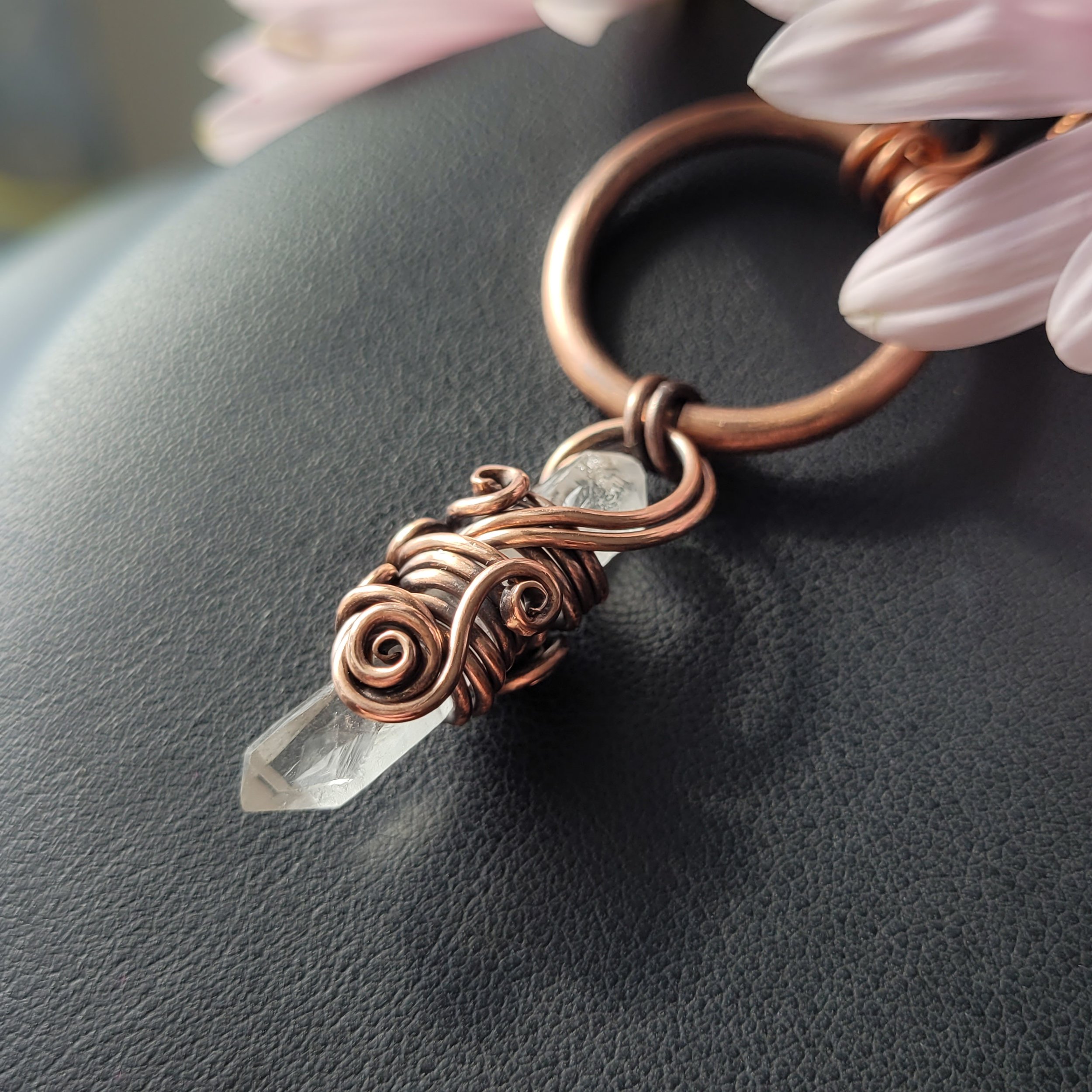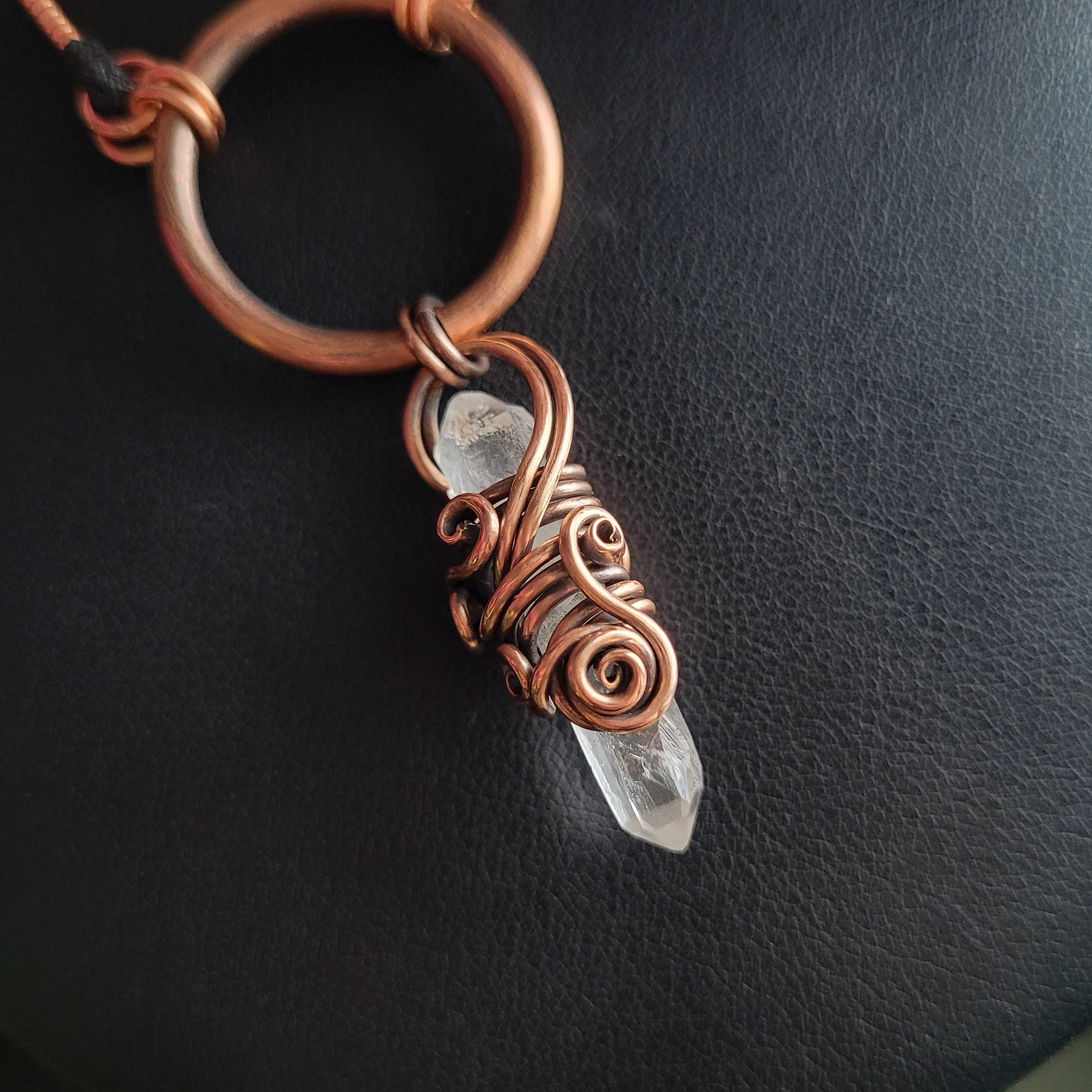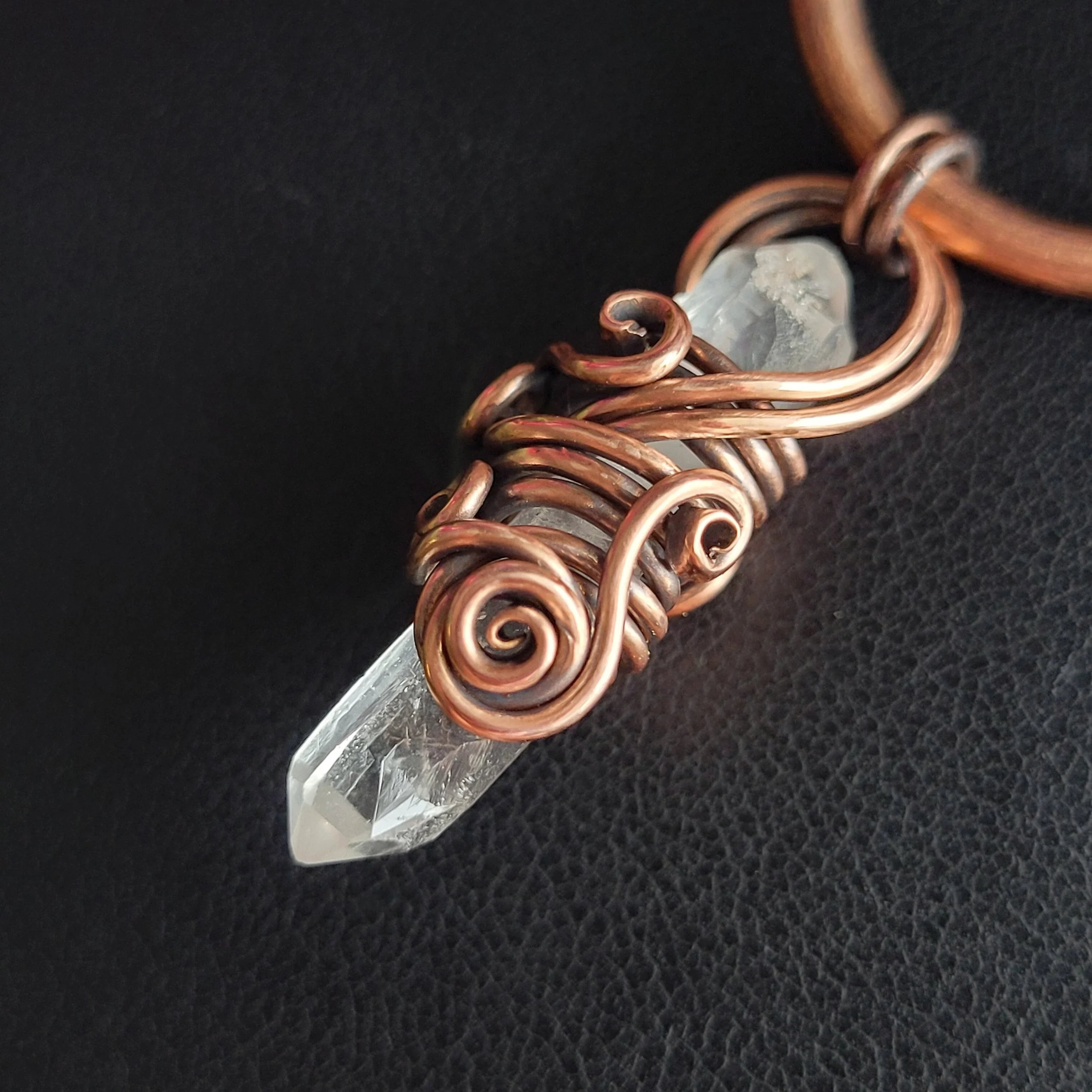 Crystal point wrapped in copper.