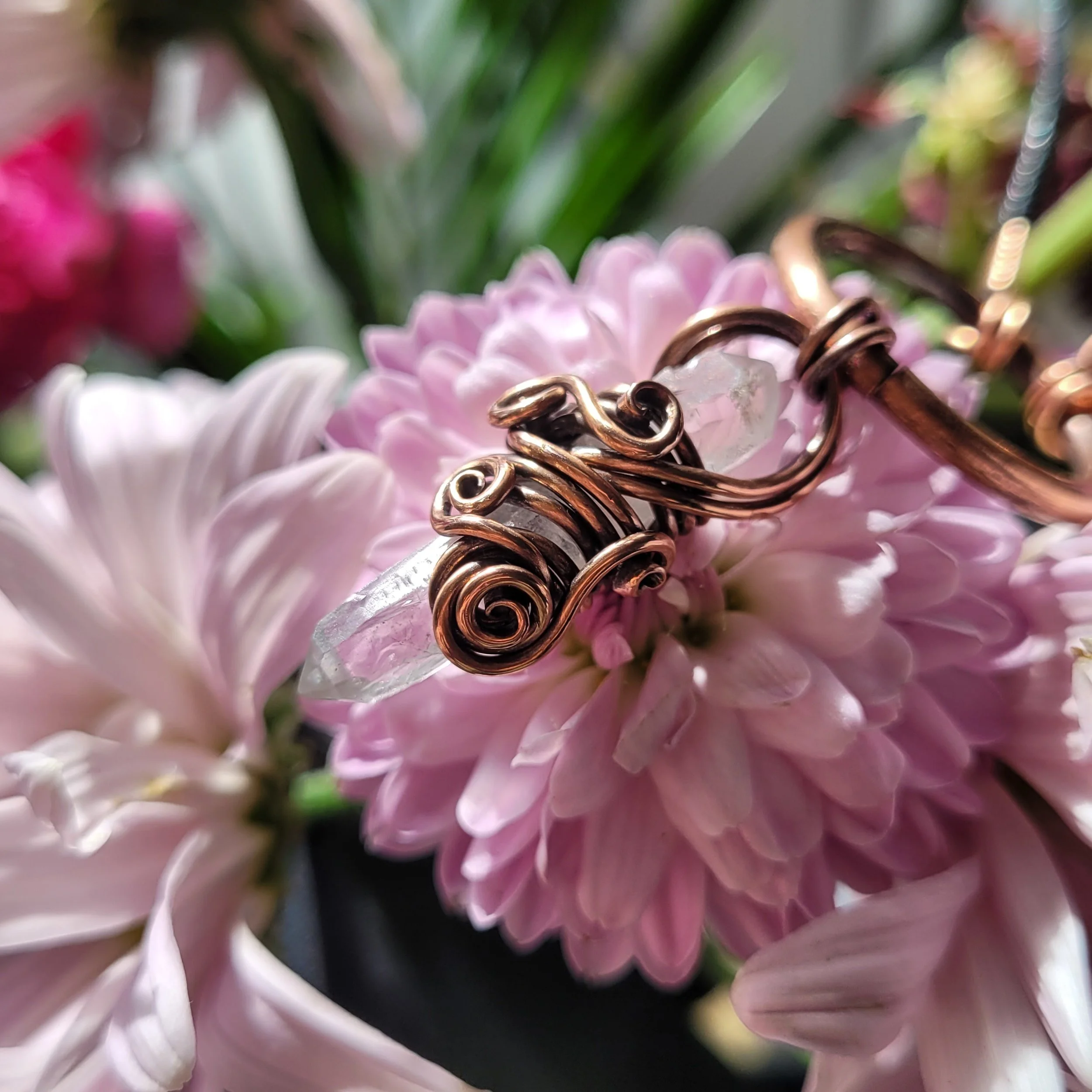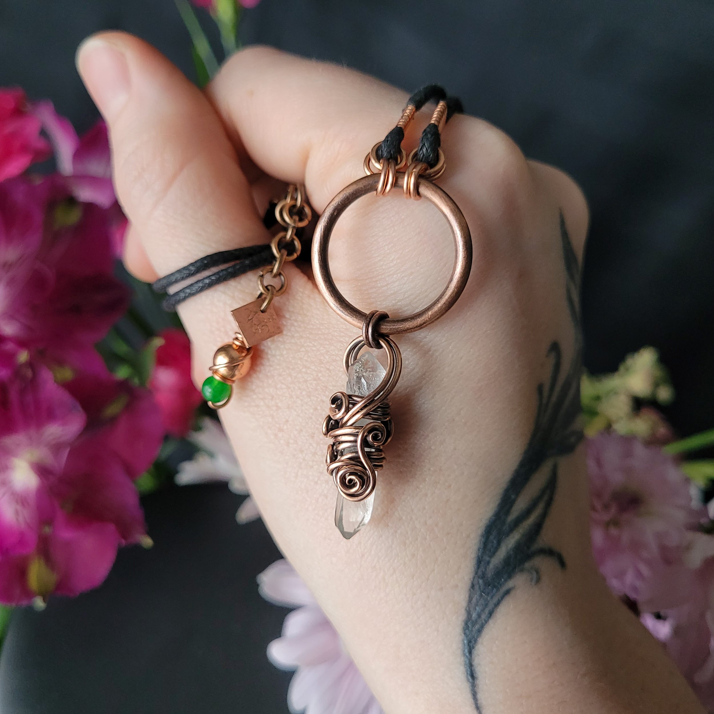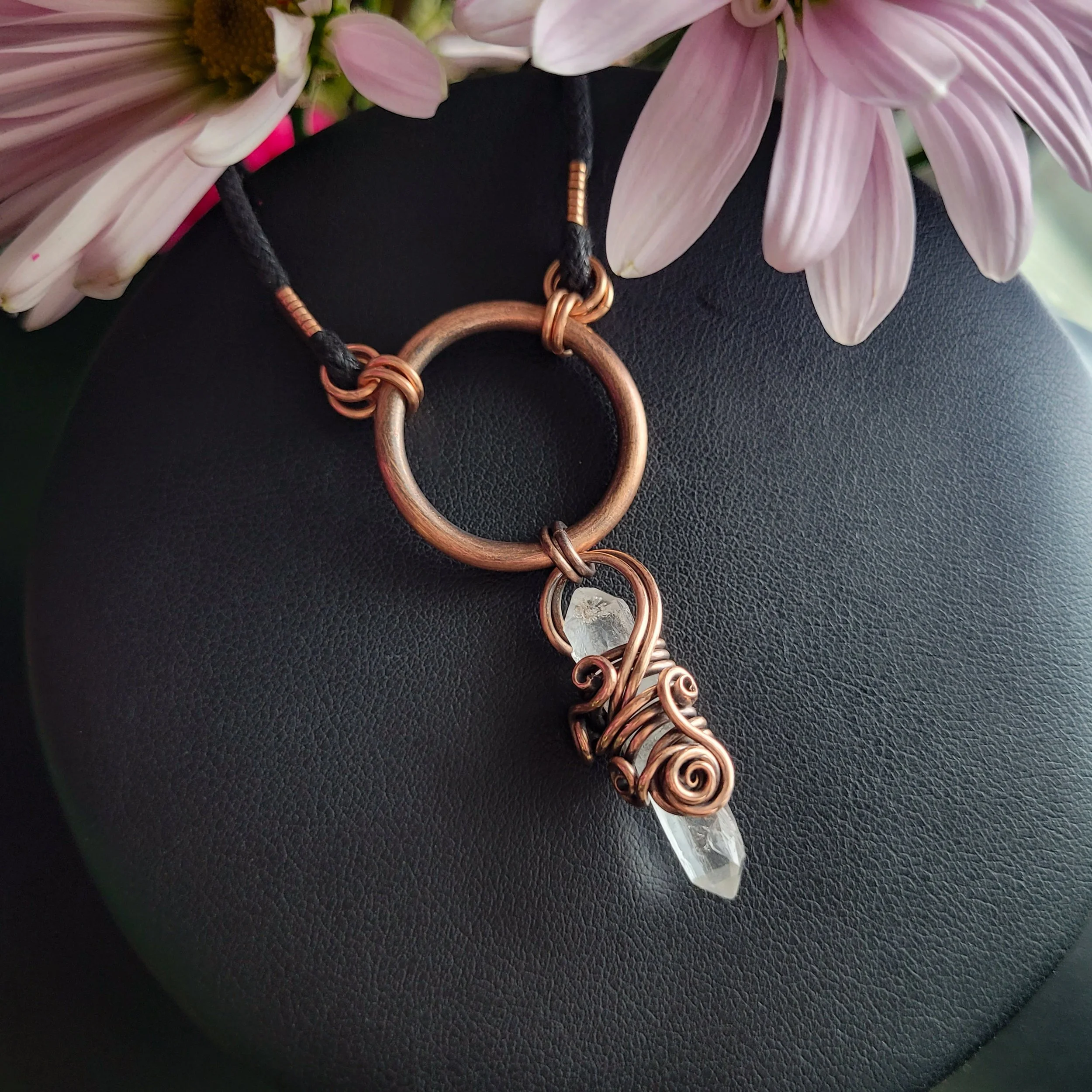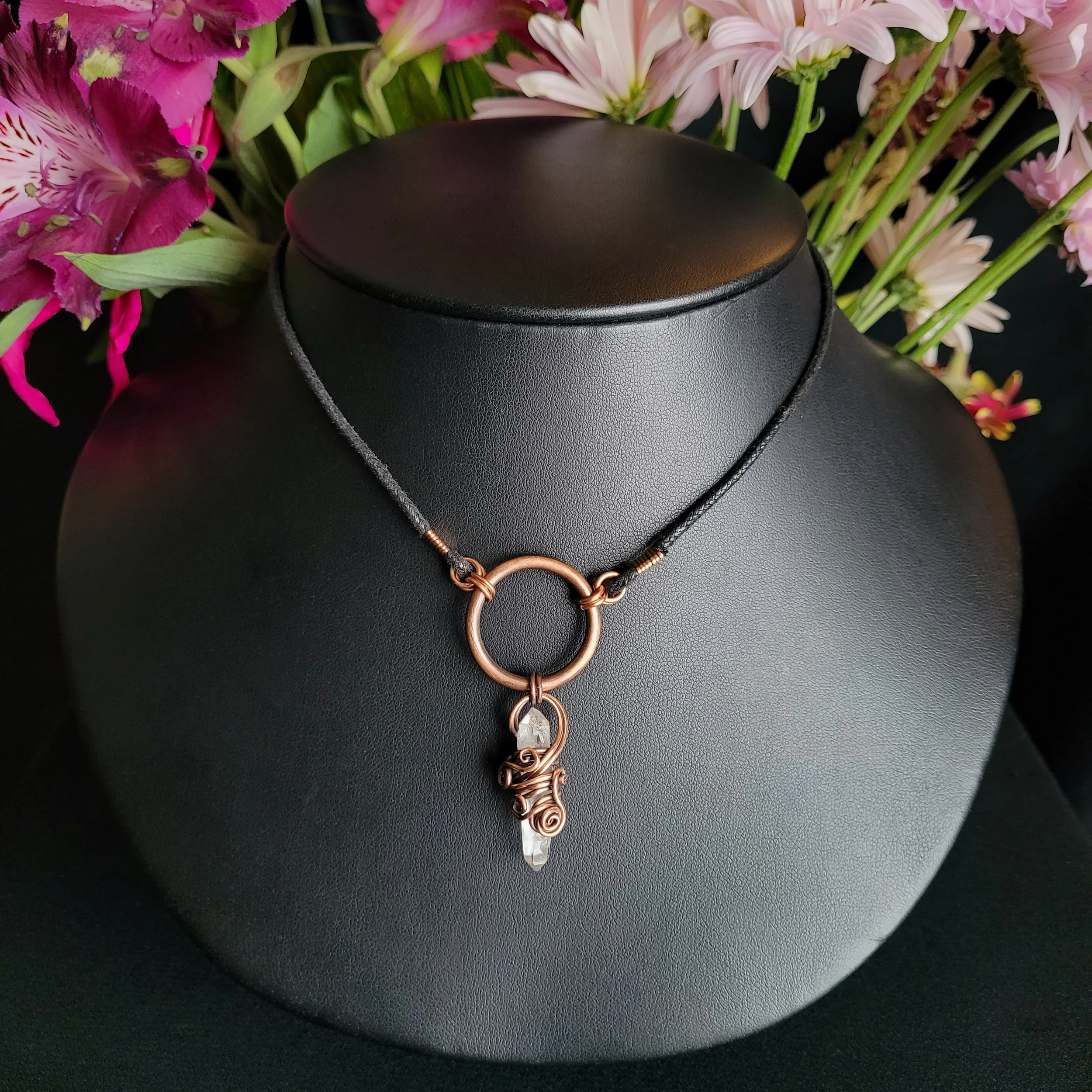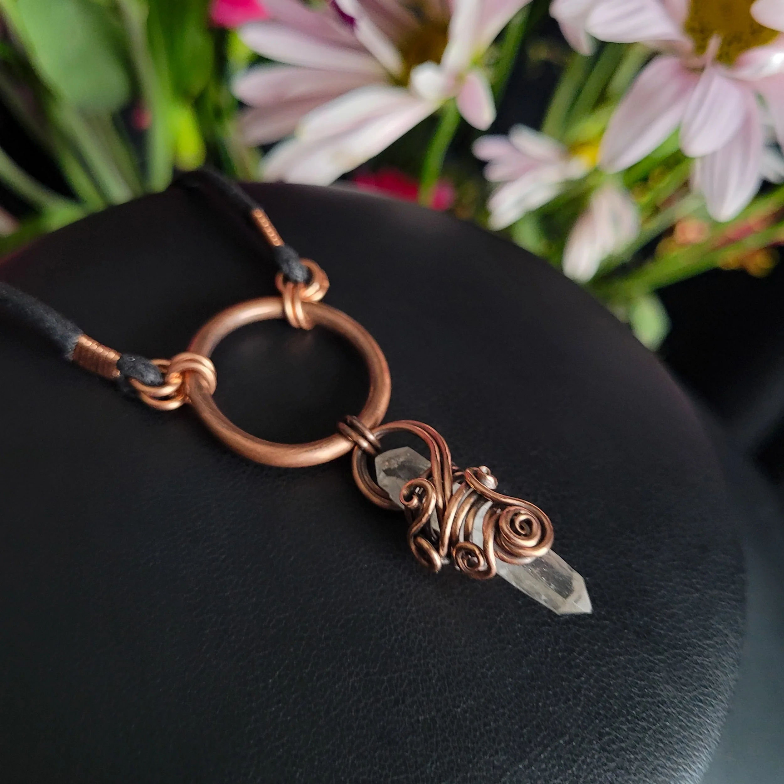 Crystal point wrapped in copper.