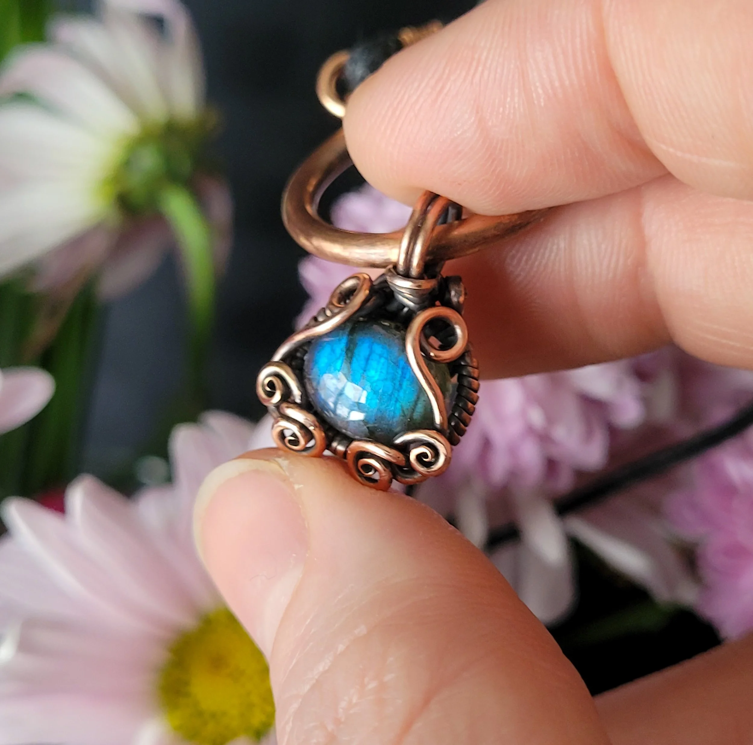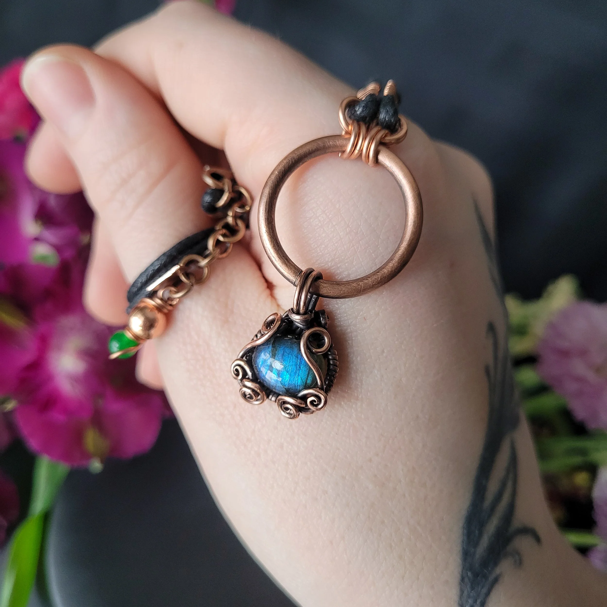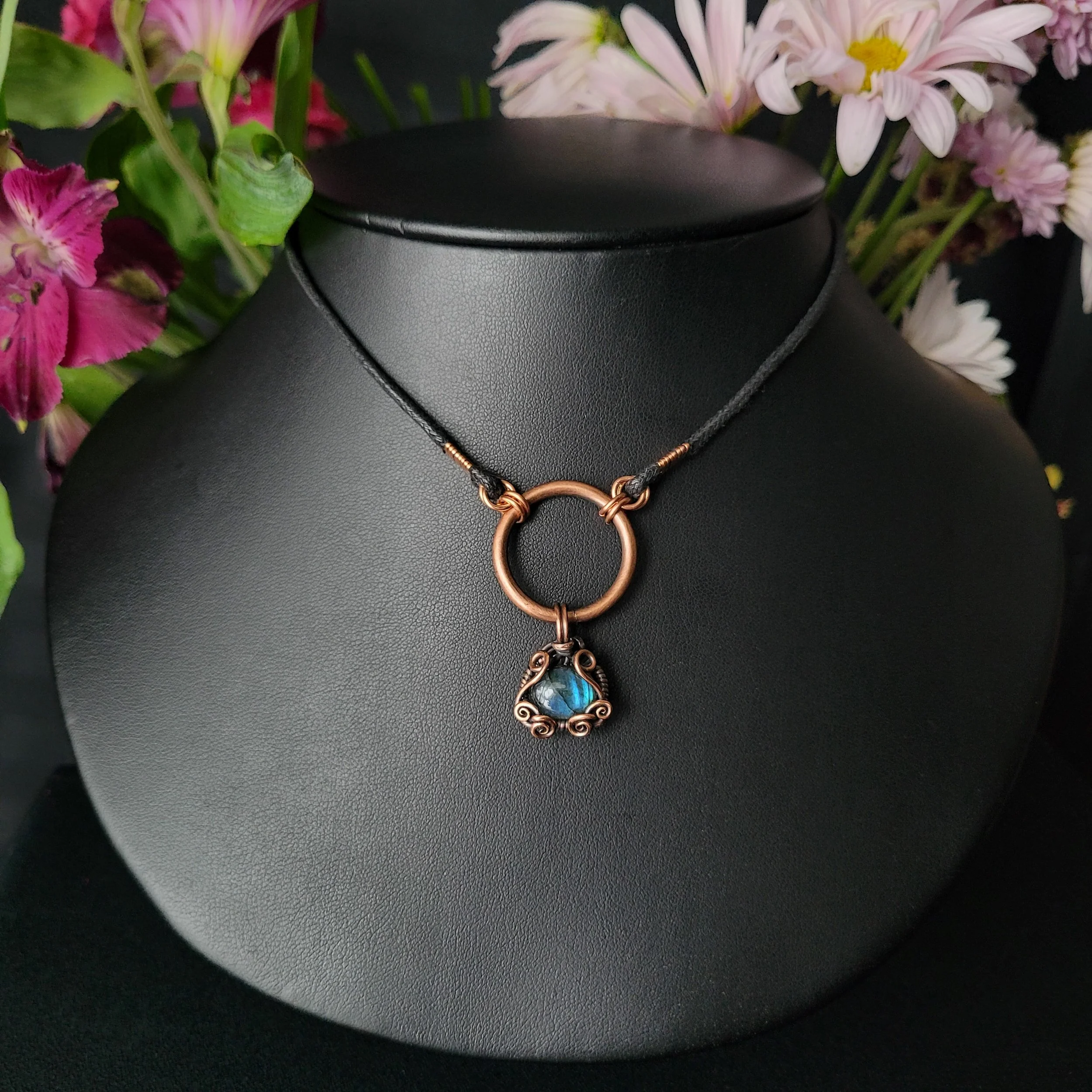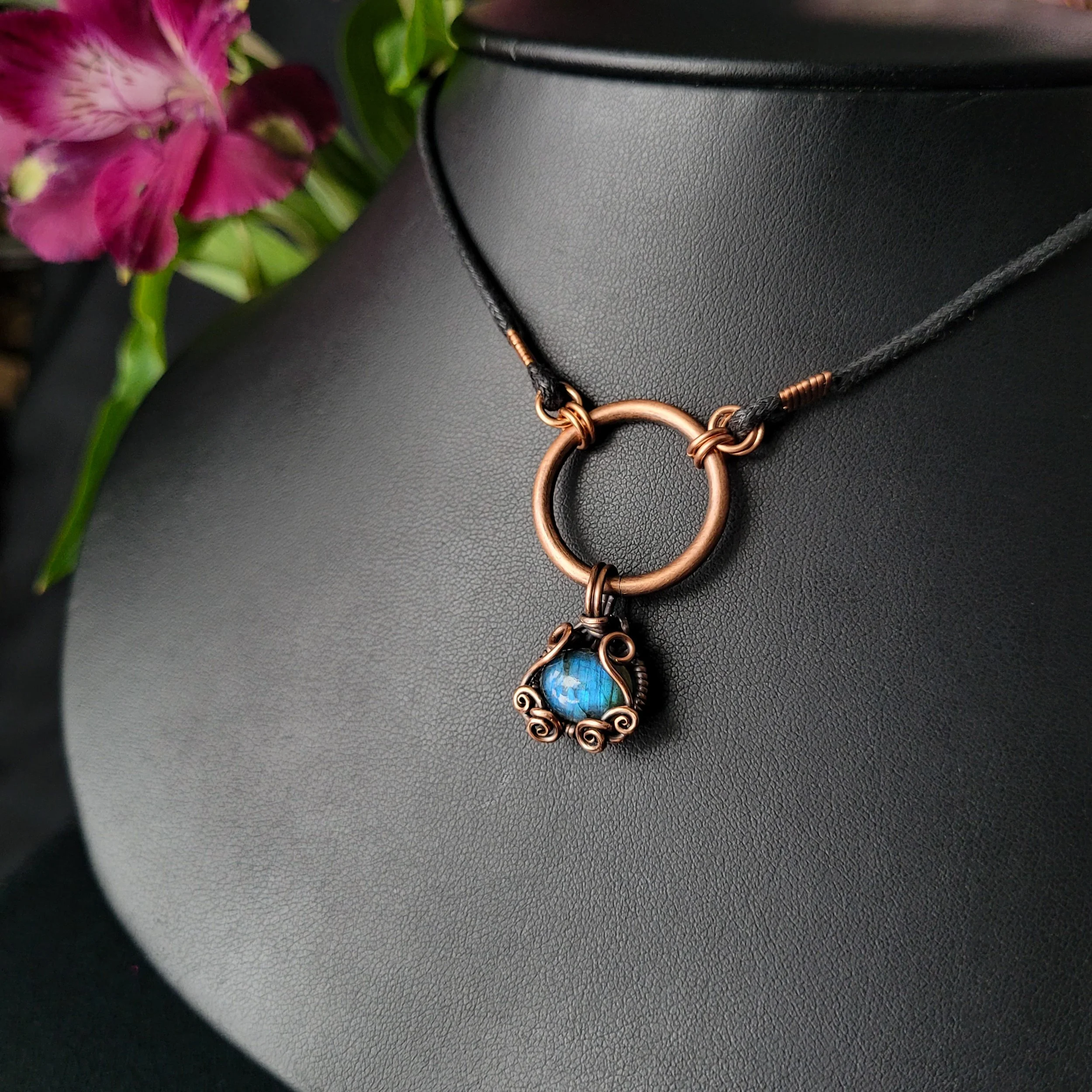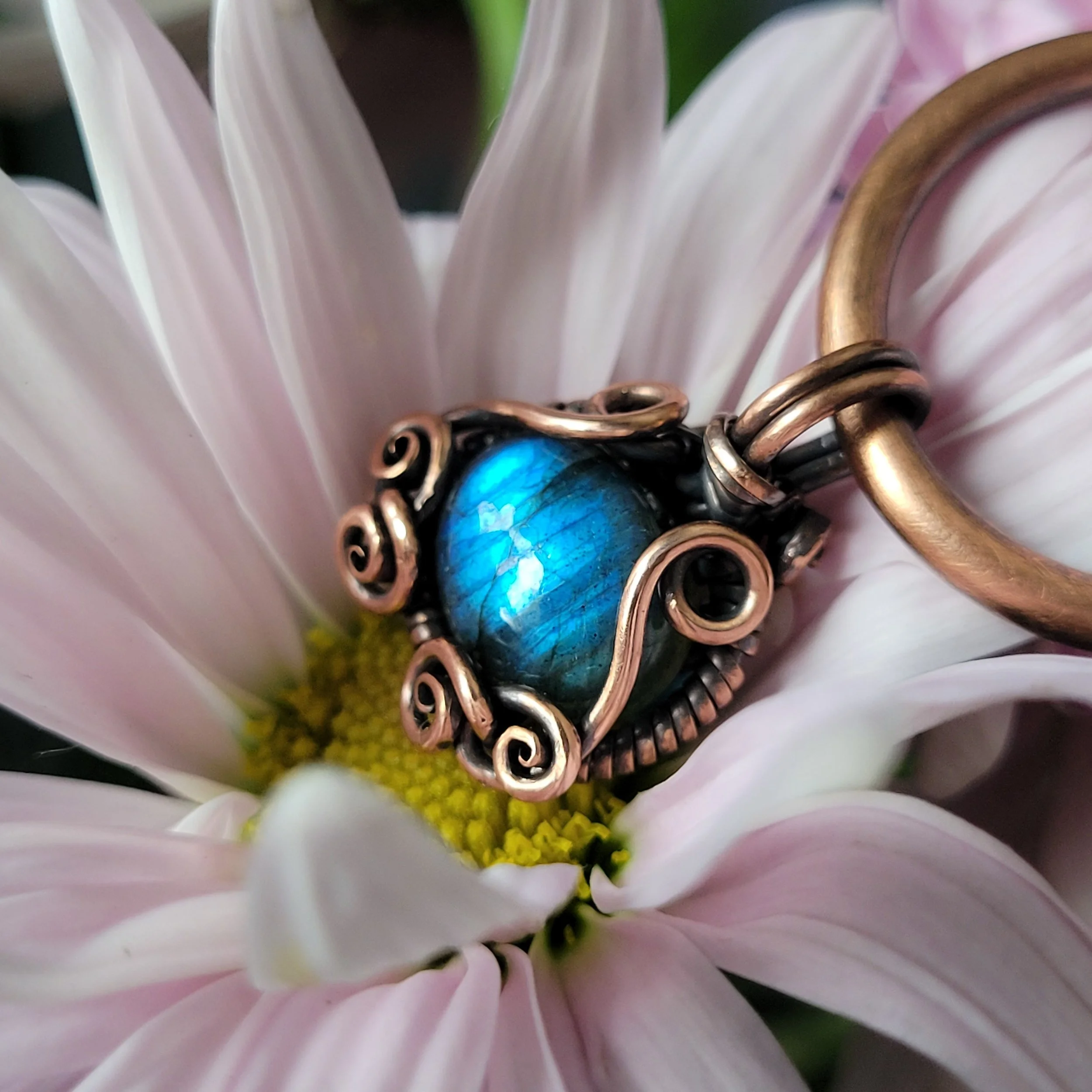 Labradorite wrapped in copper.